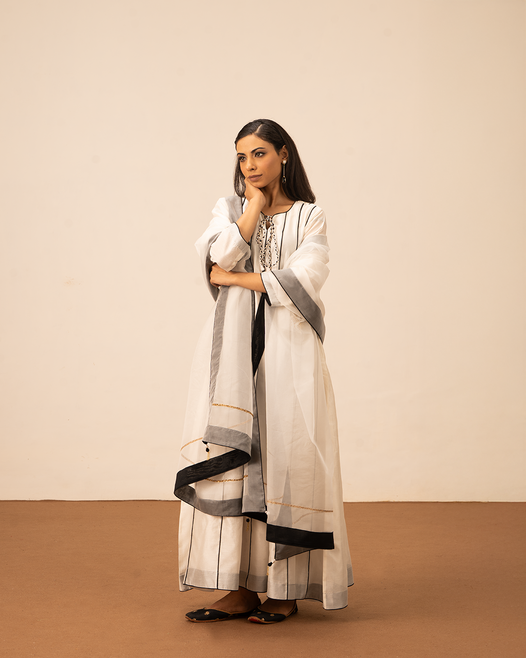 • Dupatta: White with Black Border