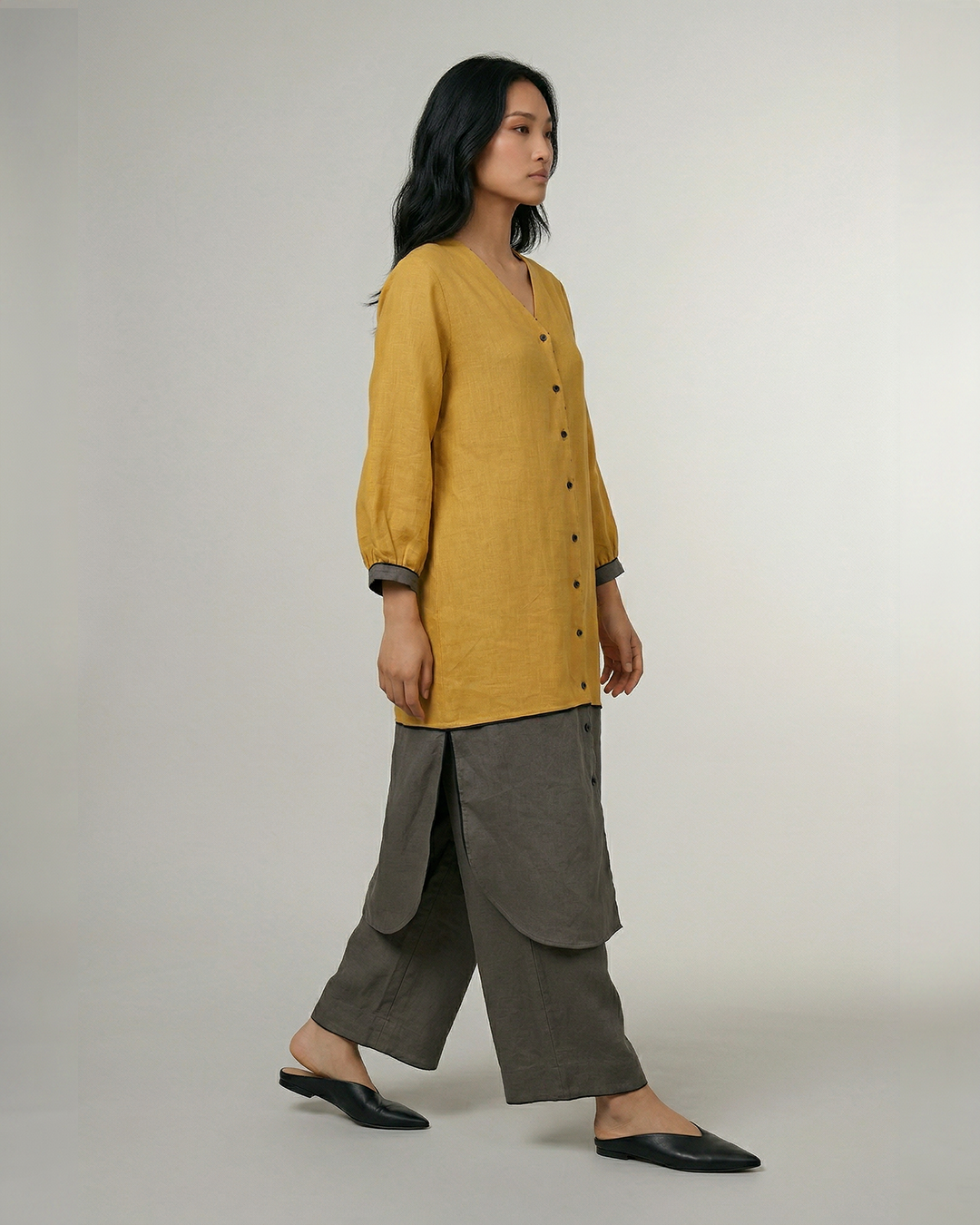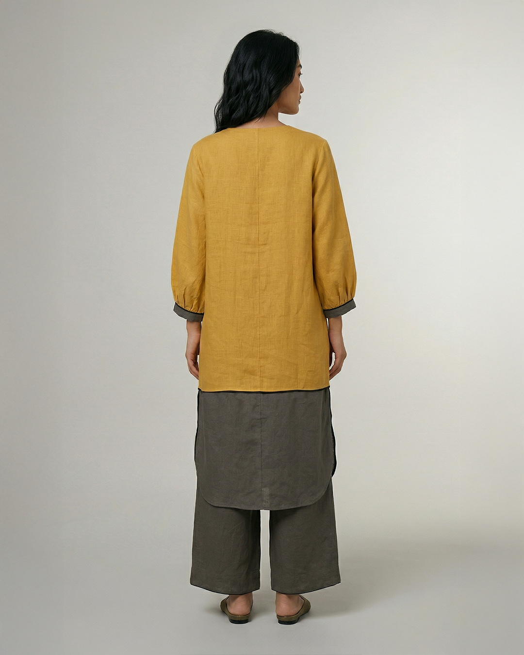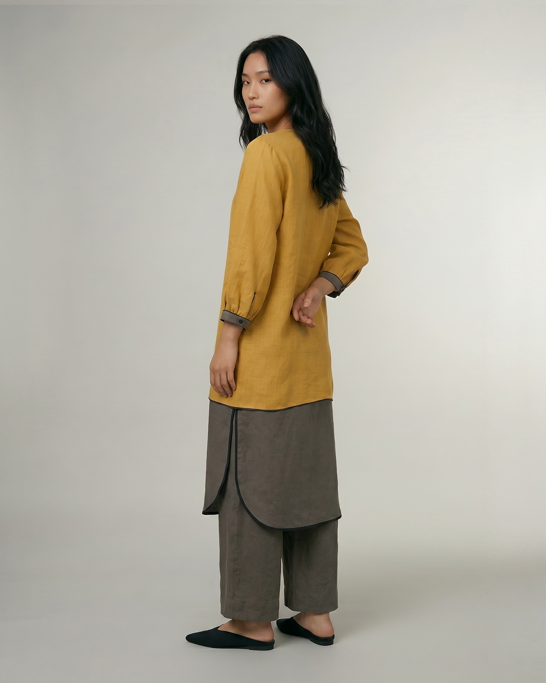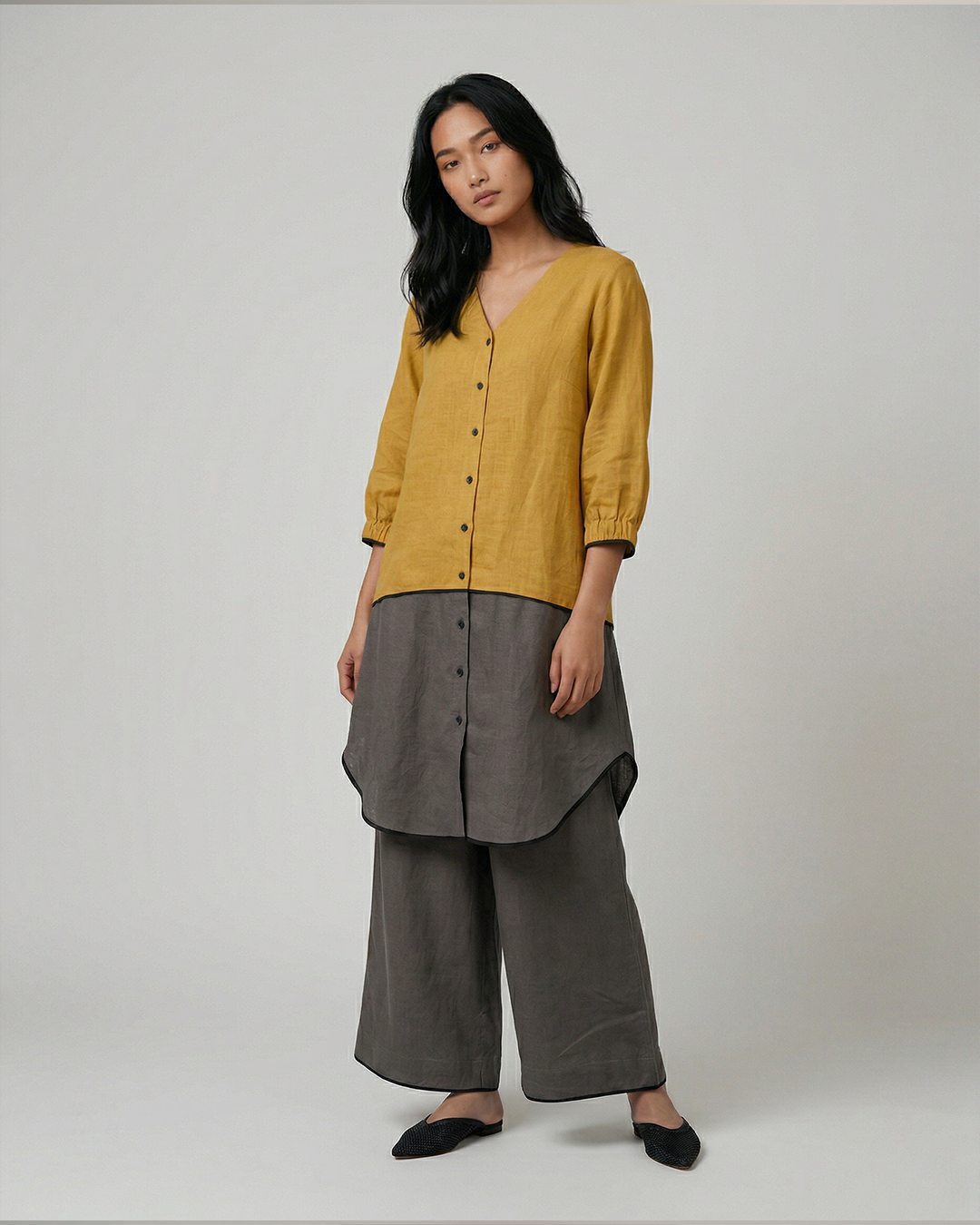 Our linen fabric is especially woven in 70% pure linen thread and 30% pure cotton thread, both of the finest quality. This unique blend offers breathable comfort, flowy styles and easy maintenance - all while maintaining the premiumness of linen intact.