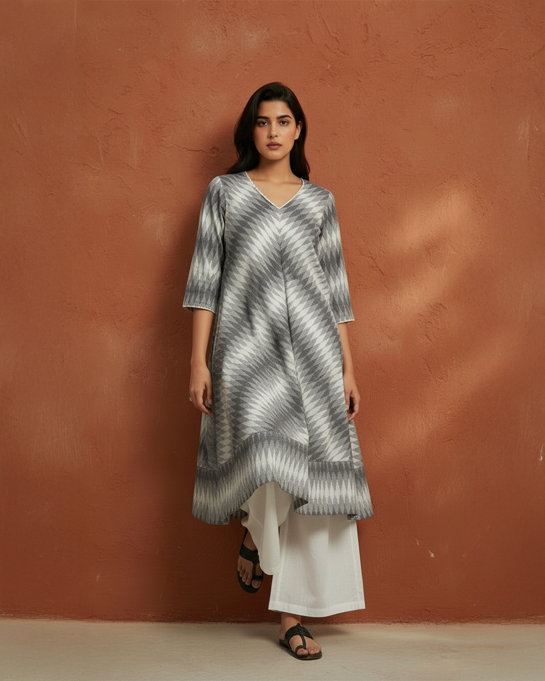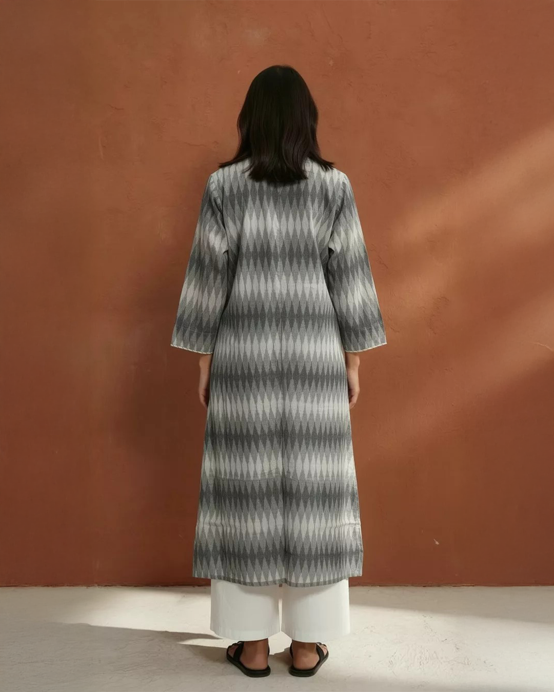 This Loom Kurta Set is designed for comfort and everyday wear while still looking refined and put-together. Made from soft breathable handloom cotton, the kurta features a relaxed silhouette with a handcrafted ikat weave, paired with easy-fit straight pants for effortless movement. Perfect for work days, casual outings, travel and slow weekends, this set brings comfort and craftsmanship together.