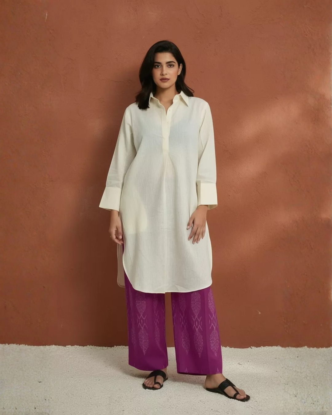 Elevate your everyday style with this chic and minimal off white kurta.  Designed for comfort and effortless elegance, perfect for workdays, travel, brunches, or relaxed outings, this versatile kurta blends artisanal charm with contemporary ease.