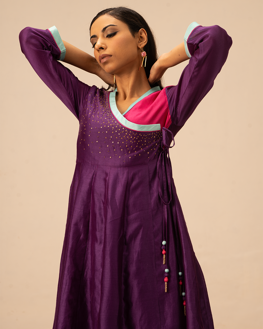 • Kurta: Purple with Pink and Blue Accents