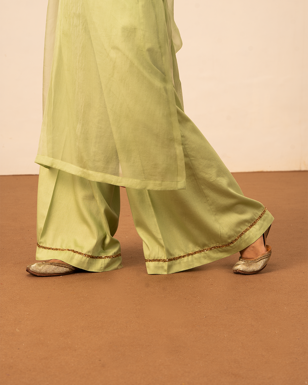 • Golden hand embroidered border on the bottom of the pant