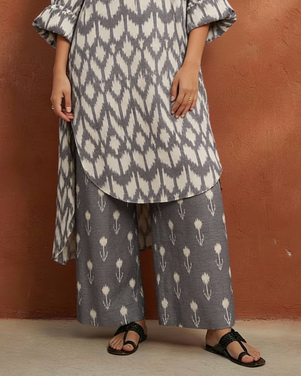 Step into effortless comfort with these Grey Ikat Pants, crafted from breathable handwoven fabric and finished with a soft, contemporary Ikat motif. Perfect for everyday wear, travel, and casual outings, these relaxed-fit bottoms blend heritage craft with modern ease. A versatile essential that pairs beautifully with kurtas, shirts, and everyday tops.